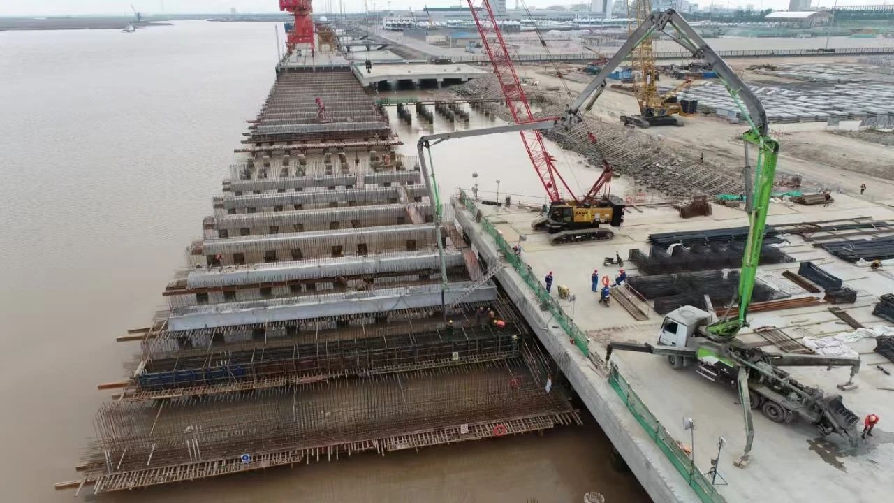 強勁增長背后,是專業化碼頭集群的加速成型。依托得天獨厚的“風光”資源,鹽城港射陽港區針對風電設備運輸的特殊需求,主動提級擴能,正加速推進四期工程建設,為外貿出口按下“加速鍵”?!案脑旌笠龢驅挾仍黾?0%,可滿足150米級超長設備運輸需求?!表椖控撠熑藯顣云浇榻B,根據建設計劃,碼頭水工結構預計于今年年底竣工,項目全面運營后,年運輸能力可達250套整機和400套葉片,將充分保障港區風電產業的長遠發展需求。