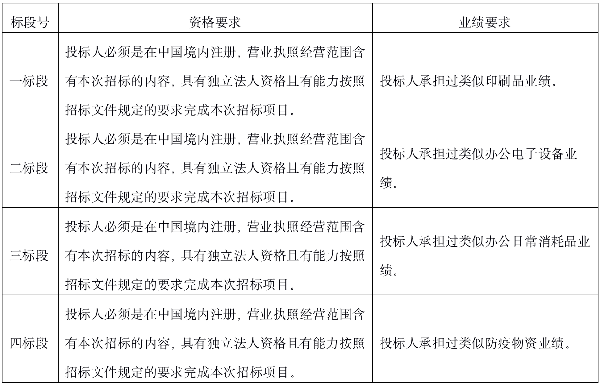5、各標(biāo)段投標(biāo)人資格及業(yè)績(jī)要求見(jiàn)下表: