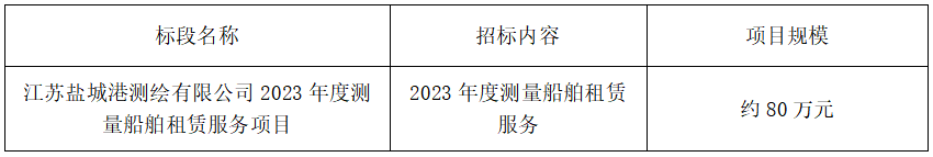 一、?江蘇鹽城港測繪有限公司 就江蘇鹽城港測繪有限公司2023年度測量船舶租賃服務項目進行公開招標,誠邀合格的投標人前來報名參加。