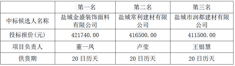 4、擬確定的中標(biāo)人:鹽城金盛裝飾面料有限公司
