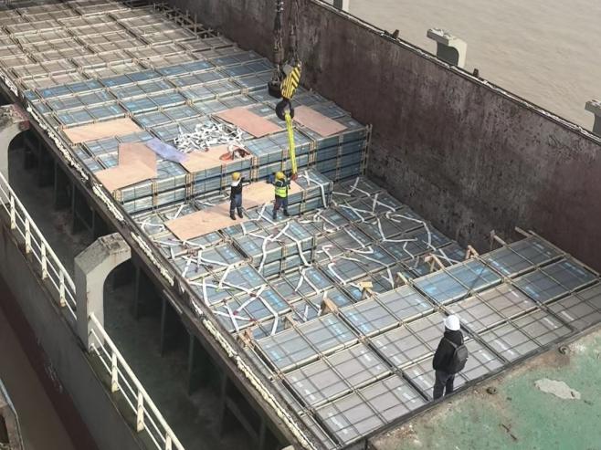 精密貨種精細接卸,全流程管控彰顯實力。光伏玻璃作為易損精密貨種,對裝卸、轉運過程的穩(wěn)定性與精準度要求極為嚴苛。面對挑戰(zhàn),港區(qū)一線生產(chǎn)班組提前開展專項培訓,針對光伏玻璃特性優(yōu)化吊具與工屬具配置,嚴格制定精細化作業(yè)流程。作業(yè)過程中,操作人員精準控制每個環(huán)節(jié),采用軟性襯墊、平穩(wěn)起吊、緩慢移動等專業(yè)措施,有效保障了貨物完好無損接卸,充分展現(xiàn)了射陽港在精密貨種作業(yè)領域的專業(yè)能力。