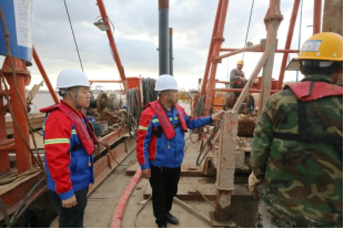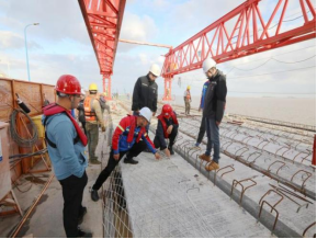 “今日已完成P72-76南半幅護輪坎澆筑、P22橫梁舊橋板切割拆除、P26/27南半幅橫梁鋼筋綁扎立模、P38/C鉆孔、P36/C沖擊鉆引孔、P32/62排架水下清障以及P67-68預(yù)制空心板安裝共計七項工作,無安全隱患發(fā)生?!?/p>