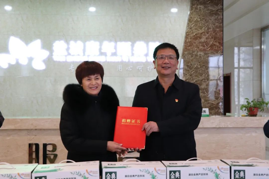 康年頤養院成立于2017年,是我市養老事業發展的重點單位,也是我市唯一一家省級“五星級養老單位”,其服務質量等各方面均得到了各級領導的認可。目前該院已入住400多位老人,其中五保老人約100人。活動現場舉行了慰問物資捐贈儀式,徐桂榮代表康年頤養院向集團頒發捐贈證書。