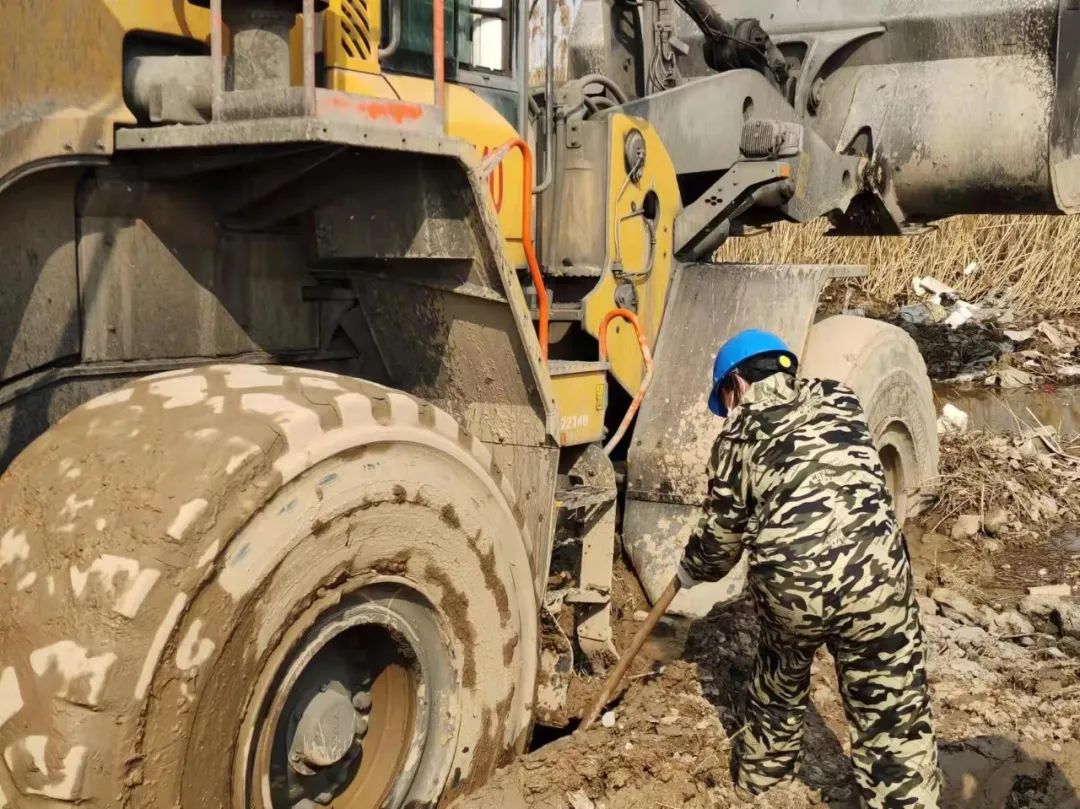 迎難而上 百折不撓 |響水港區成功化解一起裝載機陷泥應急事件
