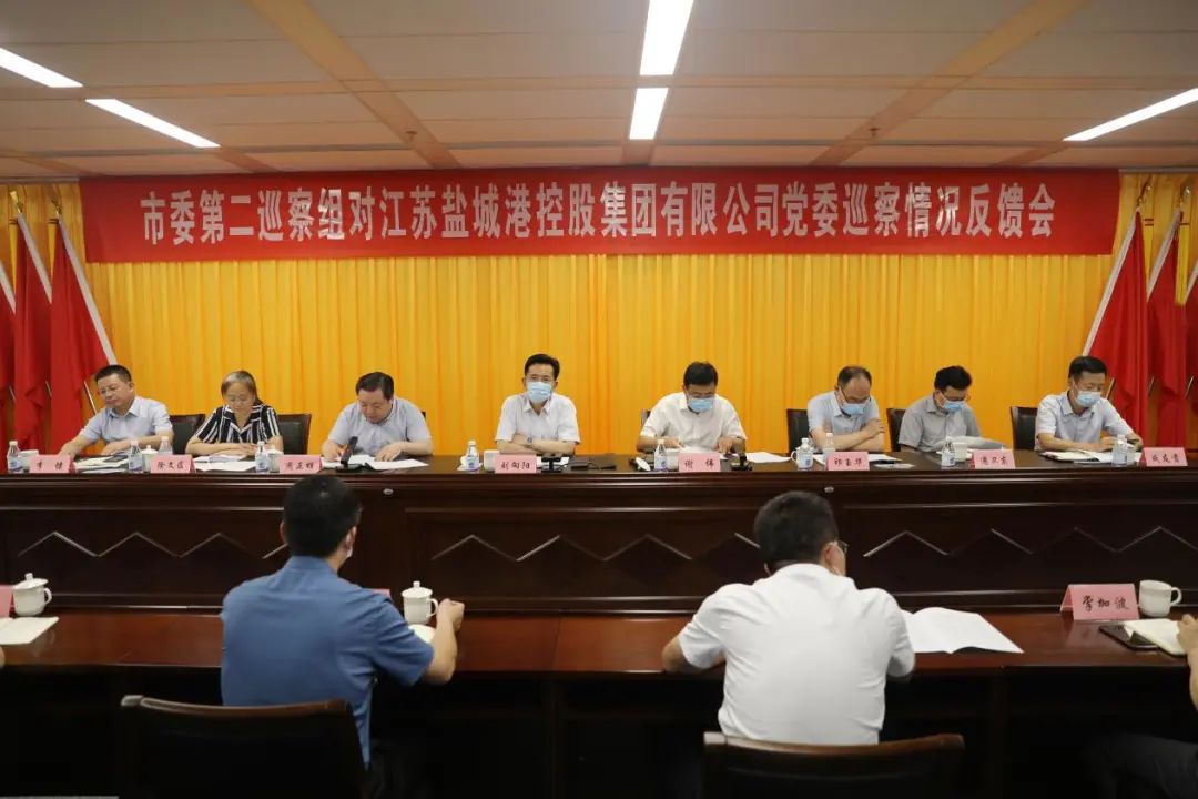 根據(jù)市委巡察工作領(lǐng)導(dǎo)小組部署,7月19日下午,市委第二巡察組向鹽城港集團(tuán)黨委反饋巡察情況。市委巡察工作領(lǐng)導(dǎo)小組成員、市紀(jì)委副書(shū)記、市監(jiān)委副主任劉向陽(yáng)傳達(dá)市委書(shū)記專(zhuān)題會(huì)議精神,并對(duì)抓好巡察整改工作提出要求。市委第二巡察組組長(zhǎng)謝偉代表市委巡察組向鹽城港集團(tuán)黨委領(lǐng)導(dǎo)班子反饋巡察情況。鹽城港集團(tuán)黨委書(shū)記、董事長(zhǎng)、總經(jīng)理周正雄主持會(huì)議并作表態(tài)發(fā)言。