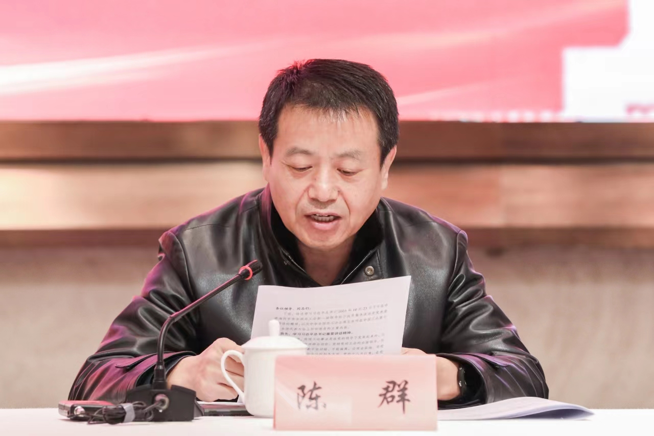 會上,陳群傳達學習了習近平總書記同中華全國總工會新一屆領導班子成員集體談話的重要講話精神 ,以及中華全國總工會第十八次全國代表大會會議精神。