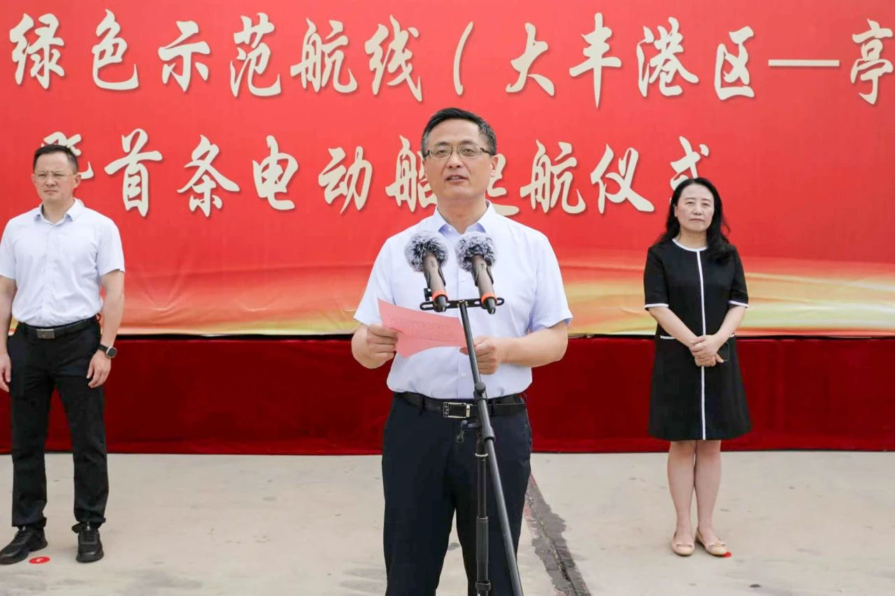 陸帥表示,綠色發(fā)展是高質(zhì)量發(fā)展的底色,綠色示范航線的開(kāi)通及電動(dòng)船的啟用是落實(shí)集團(tuán)關(guān)于構(gòu)建綠色、生態(tài)、智慧、平安、美麗“五新示范港”的有力抓手,是鹽城港深入輻射淮河生態(tài)經(jīng)濟(jì)帶、全力打造淮河生態(tài)經(jīng)濟(jì)帶出海門(mén)戶(hù)的生動(dòng)實(shí)踐,為實(shí)現(xiàn)河海聯(lián)運(yùn)一體化發(fā)展提供了有力支撐,為落實(shí)“碳達(dá)峰、碳中和”等中長(zhǎng)期戰(zhàn)略目標(biāo)奠定了堅(jiān)實(shí)基礎(chǔ)。集團(tuán)全體干部職工要以今天的開(kāi)航為新起點(diǎn),發(fā)揚(yáng)開(kāi)拓創(chuàng)新“拓荒牛”精神,主動(dòng)下好淮河戰(zhàn)略的“先手棋”“制勝棋”“長(zhǎng)遠(yuǎn)棋”,充分發(fā)揮江蘇獨(dú)特的水韻之美、水運(yùn)之利,為腹地企業(yè)提供更加經(jīng)濟(jì)、便捷、可靠的物流服務(wù),積極策應(yīng)綠色低碳發(fā)展新趨勢(shì),全力在發(fā)展新質(zhì)生產(chǎn)力進(jìn)程中尋求新突破,接續(xù)奮斗、再立新功,奮力為鹽城勇當(dāng)全省發(fā)展新質(zhì)生產(chǎn)力重要陣地“碳路先鋒”作出更大貢獻(xiàn)。