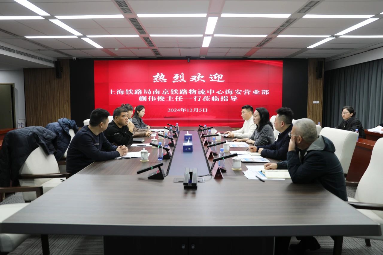 12月5日上午,上海鐵路局南京鐵路物流中心海安營業(yè)部蒯偉俊主任一行拜訪我集團(tuán),就海鐵聯(lián)運(yùn)、鐵水聯(lián)運(yùn)等事宜進(jìn)行深入交流。集團(tuán)副總經(jīng)理袁欣接待。