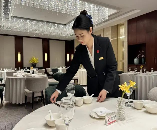 在鹽城港半島溫泉酒店,總能看到一個身影穿梭在中餐廳的各個角落。她時而彎腰檢查餐具擺放的角度,時而蹲下整理桌布的褶皺,每一個細(xì)節(jié)都逃不過她專注的目光。她就是張曉芳,一個用三年時間從普通服務(wù)員成長為獨當(dāng)一面的中餐廳副經(jīng)理的“95后”姑娘。
