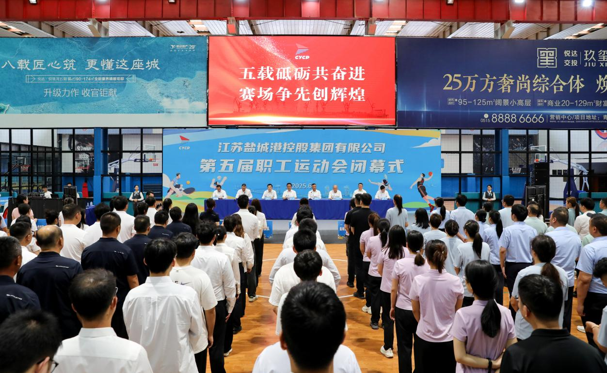 ????閉幕式在雄壯的國歌聲中拉開帷幕。全體人員共同觀看了鹽城港五年發(fā)展紀(jì)實(shí)片,回顧了集團(tuán)從整合起步到跨越發(fā)展的輝煌歷程。工作人員宣讀了職工運(yùn)動(dòng)會(huì)及相關(guān)活動(dòng)比賽結(jié)果。