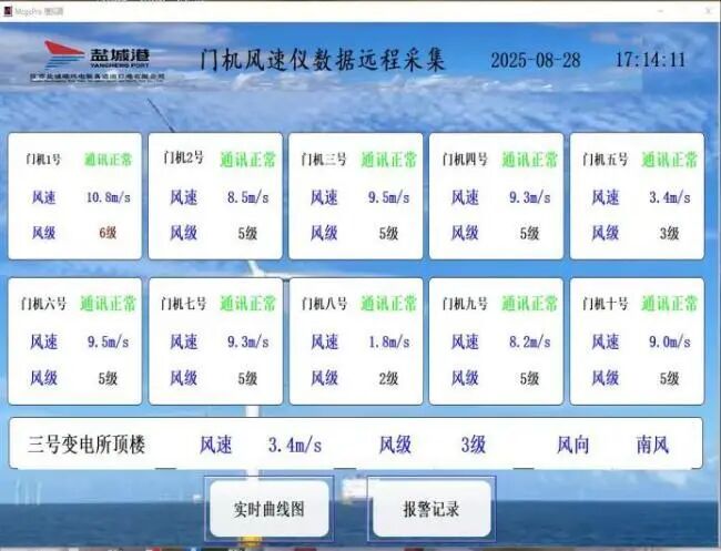 以往,門機(jī)實(shí)時(shí)風(fēng)速數(shù)據(jù)僅能在司機(jī)室查看,值班室調(diào)度人員、現(xiàn)場(chǎng)管理人員無(wú)法同步獲取,存在信息滯后導(dǎo)致的安全風(fēng)險(xiǎn)。通過(guò)加裝高精度風(fēng)速傳感器,搭配低延遲無(wú)線傳輸模塊,將風(fēng)速數(shù)據(jù)實(shí)時(shí)推送至值班室監(jiān)控大屏與管理人員手機(jī)客戶端,數(shù)據(jù)傳輸延遲控制在3秒以內(nèi)。不僅避免了人工登高查看風(fēng)速的安全隱患,更降低了因風(fēng)速突變導(dǎo)致的設(shè)備損壞、貨物損耗風(fēng)險(xiǎn),顯著提升港口安全智能化管理水平。