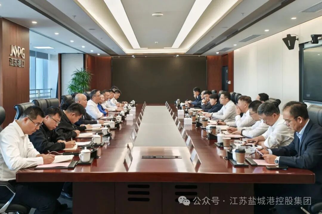 10月22日,集團黨委書記、董事長陸帥,總經理袁欣帶隊赴江蘇省港口集團拜訪,與省港口集團黨委書記、董事長陳明,總經理、黨委副書記王洪濤座談交流,進一步深化港港合作,推動產業對接、航道互通,更好服務區域協同發展,為“水運江蘇”建設添勢賦能。省港口集團副總經理、黨委委員唐文,鹽城港集團黨委委員、副總經理丁安廣、陳正華,以及相關單位和部門負責同志等參加。