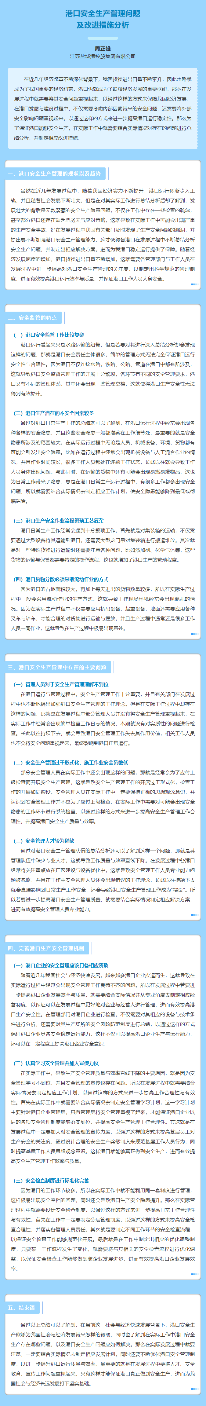 港口安全生產管理問題及改進措施分析