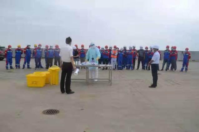 活動(dòng)中,黨總支書記韋林和作培訓(xùn)動(dòng)員,鹽城海關(guān)駐大豐港辦事處領(lǐng)導(dǎo)對(duì)港口作業(yè)人員宣講了常態(tài)化防疫管理對(duì)港口作業(yè)的重要性,專班工作人員就規(guī)范穿脫防護(hù)服、醫(yī)療廢棄物垃圾袋消毒和鵝勁式包扎流程進(jìn)行了示范操作。