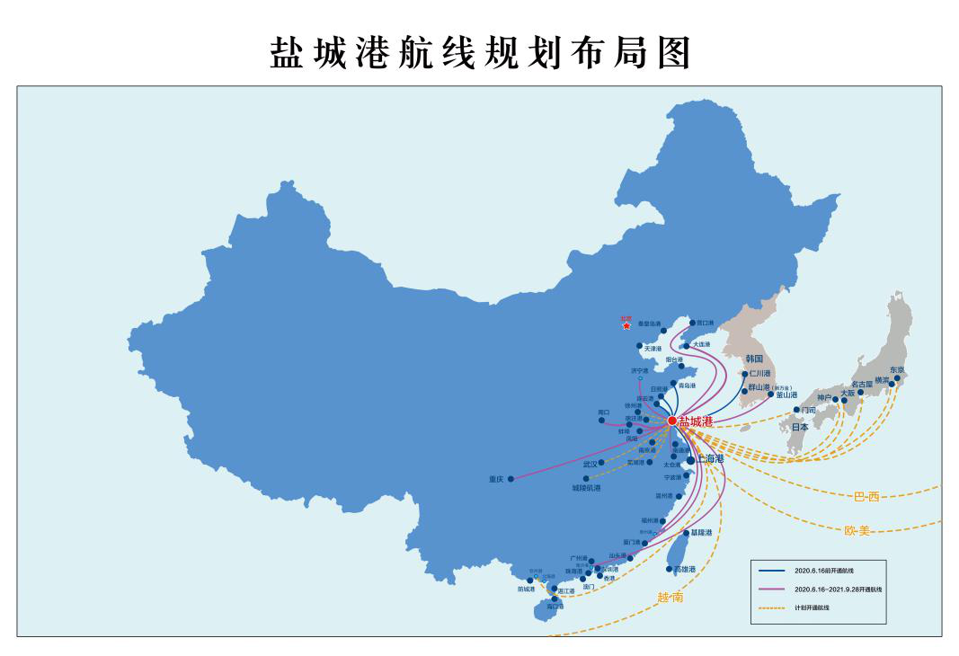 在航線開辟方面,自去年6月16日鹽城港集團成立以來,新開辟航線15條,滬鹽專線實現每周四班,鹽太內河集裝箱航線實現每周三班,鹽城港“海上聯結南北,內陸貫通東西,向海融入中日韓”雙循環新格局進一步完善。