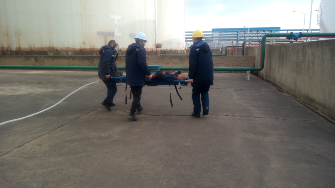 本次演練主要通過模擬作業(yè)人員進入儲罐作業(yè)時,未按公司操作規(guī)程進行,在發(fā)生的受限空間事故時,如何通過正確使用應(yīng)急救援物資在現(xiàn)場進行救援。