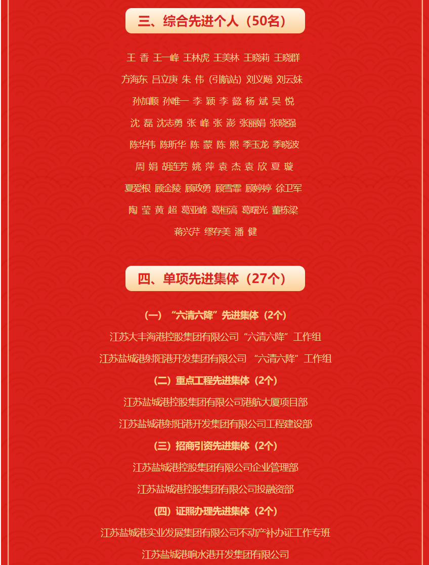 江蘇鹽城港控股集團有限公司 2021年度先進集體及個人名單