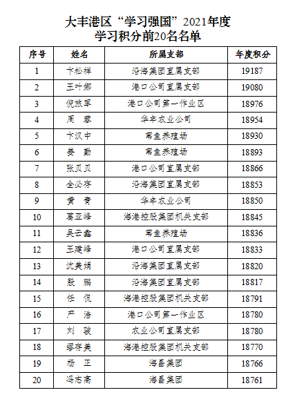 新的一年,為表彰先進(jìn)、激勵后進(jìn),持之以恒地提高港區(qū)全體干部職工的學(xué)習(xí)自覺性和主動性,進(jìn)一步加強學(xué)習(xí)型黨組織建設(shè)。近日,大豐港區(qū)舉行“學(xué)習(xí)強國”2021年度先進(jìn)個人頒獎儀式,根據(jù)“學(xué)習(xí)強國”APP大豐港區(qū)年度學(xué)習(xí)積分排名,對成績突出的前20名“學(xué)習(xí)達(dá)人”代表進(jìn)行了表彰,并頒發(fā)榮譽證書。