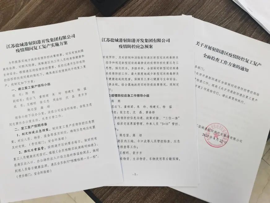 射陽港區(qū)堅決貫徹執(zhí)行“三位一體”管控的總體要求,在復(fù)工復(fù)產(chǎn)前,邀請第三方專家會同各部門對港區(qū)進行一次全面的安全、環(huán)保、疫情防控大檢查,對檢查出的隱患立行立改,落實專人跟蹤進行閉環(huán)整改落實,確保復(fù)工復(fù)產(chǎn)、疫情防控安全穩(wěn)定。