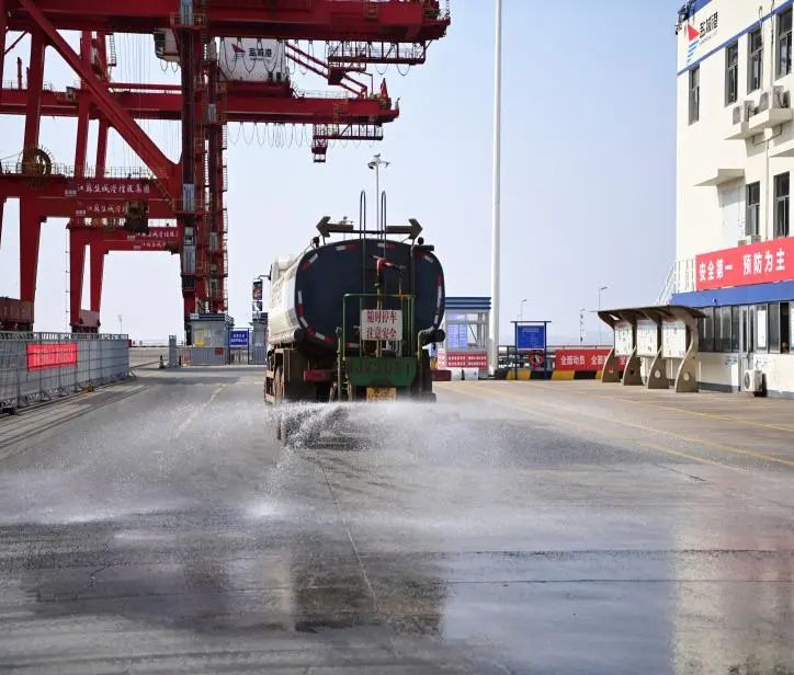 一輛輛環(huán)保車輛行駛在港區(qū)各處