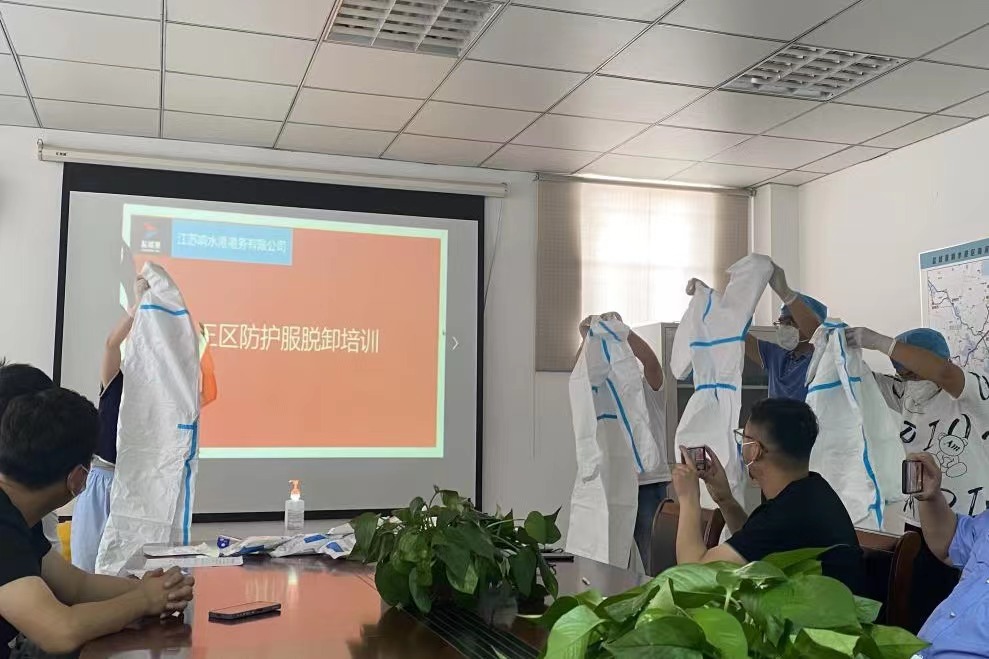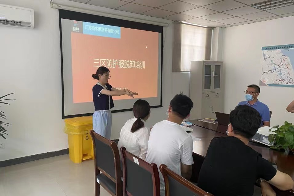 為堅決打好新型冠狀病毒疫情防控阻擊戰,全面提高應對疫情的響應能力,熟悉應急處置具體流程,從嚴抓好疫情防控工作,近日,響水港區港務公司特邀響水縣港城醫院專職醫護人員,對港區作業人員進行疫情防控相關的三區防護服穿脫消殺培訓。