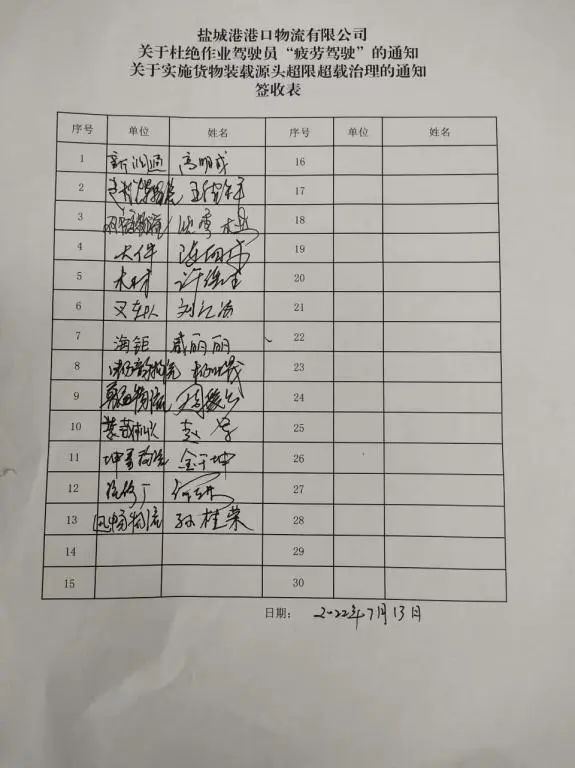 為全面做好港區(qū)作業(yè)車輛超限超載治理工作,切實(shí)加大貨運(yùn)源頭治理力度,保障道路交通運(yùn)輸安全。近期,鹽城港港口公司物流公司認(rèn)真組織職工學(xué)習(xí)貫徹國務(wù)院安委會安全生產(chǎn)“十五條”硬措施和鹽城港集團(tuán)“三位一體”工作部署要求,堅持“人民至上,生命至上”的理念,嚴(yán)格落實(shí)《關(guān)于實(shí)施貨物裝載源頭超限超載的通知》、《關(guān)于杜絕作業(yè)駕駛員“疲勞駕駛”的通知》等文件要求,全力開展安全運(yùn)輸“三步走”工作。