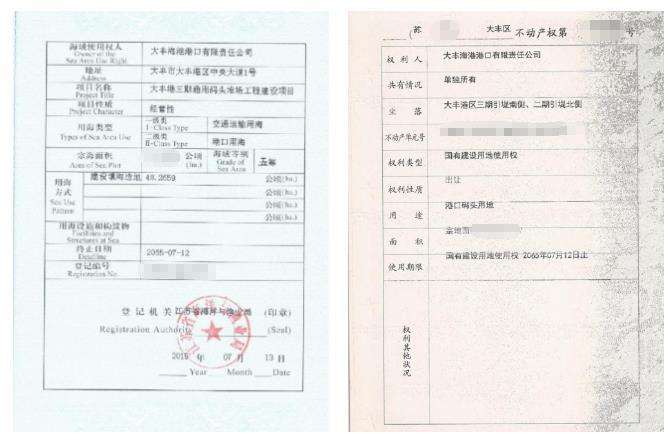 日前,港口公司、集團(tuán)海域使用權(quán)證辦理工作專班成功辦結(jié)大豐港區(qū)三期通用碼頭堆場(chǎng)工程建設(shè)項(xiàng)目的不動(dòng)產(chǎn)權(quán)證書(shū),將645畝“海域使用權(quán)”變?yōu)榱恕皣?guó)有建設(shè)用地使用權(quán)”,有力保障了國(guó)有資產(chǎn)保值增值。