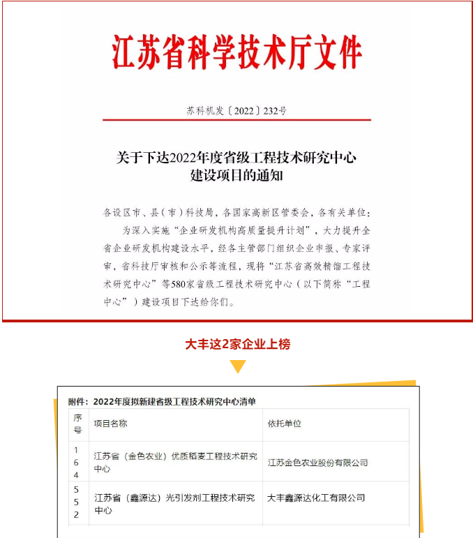 近日,江蘇省科技廳公布了2022年新建省級工程技術研究中心名單,鹽城港金色農業股份公司的《江蘇省(金色農業)優質稻麥工程技術研究中心》項目成功入選。