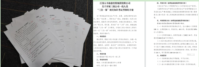 為進一步提高安全生產管理水平,更好地運用安全生產方針、政策、法律法規和安全知識,樹立“安全第一,預防為主”觀念。近日,鹽城港大豐港區組織石化板塊一線職工進行“三位一體一穩”知識考試。