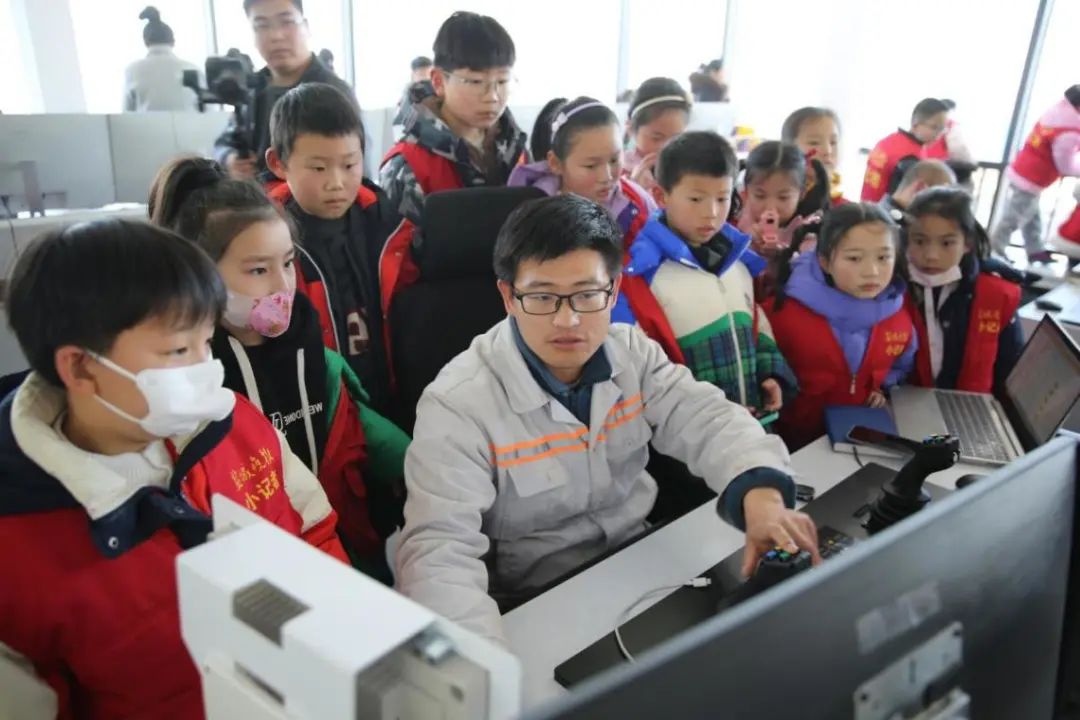 在現場講解員的帶領下,同學們整齊有序地排好隊伍,走進鹽城港大豐港區自動化集裝箱堆場中控室,“這些設備好先進啊,我從來沒見過這些‘大家伙’,真是太壯觀了。”“只要輕輕一撥就能抬起那么大的集裝箱柜,這也太酷了,長大后我也想到鹽城港操控這些先進的機器。”……在講解和參觀過程中,同學們表現出了濃烈的好奇心,尤其對鹽城港建成江蘇沿海地區首個自動化集裝箱堆場贊嘆不已,并圍繞5G、大數據、云計算等方面,踴躍提出問題,講解員用生動形象的表達方式一一給予解答,讓同學們親身感受到了“科技賦能、創新驅動”為港口帶來的深刻變化,進一步激發出他們對學習科學知識、探索未知領域的極大興趣。