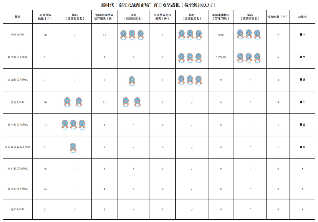 1.累計拜訪客戶數(shù)量523家:其中大豐港區(qū)先鋒隊103家,黨員先鋒隊56家,多式聯(lián)運第二先鋒隊51家,巾幗先鋒隊50家,建湖港區(qū)先鋒隊49家,響水港區(qū)先鋒隊46家,射陽港區(qū)先鋒隊31家,濱海港區(qū)先鋒隊31家,亭湖港區(qū)先鋒隊29家,多式聯(lián)運第一先鋒隊24家,青年先鋒隊21家,阜寧港區(qū)先鋒隊18家,航運集團先鋒隊14家。