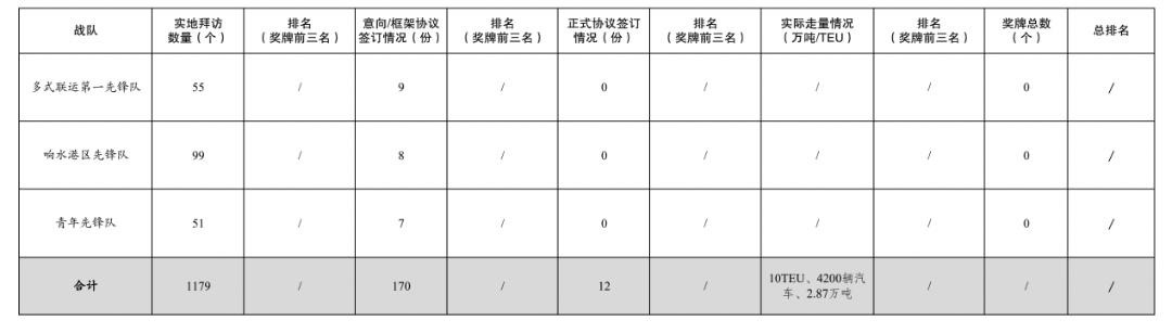 活動開展以來,累計拜訪客戶數量1179家,簽訂意向/框架協議數量170份,簽訂正式協議12份,實際走量10TEU、4200輛汽車、2.87萬噸。