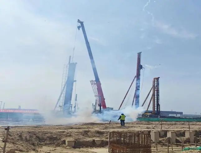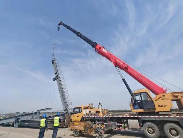 在機械及司號聲中,第一根預(yù)制鋼架被徐徐吊起,穩(wěn)穩(wěn)地安裝在承臺基礎(chǔ)上,由項目咨詢公司代管的大豐港綜合倉儲物流項目鋼結(jié)構(gòu)工程首吊成功完成,標(biāo)志著該項目正式進入安裝施工階段,開啟建設(shè)新篇章。