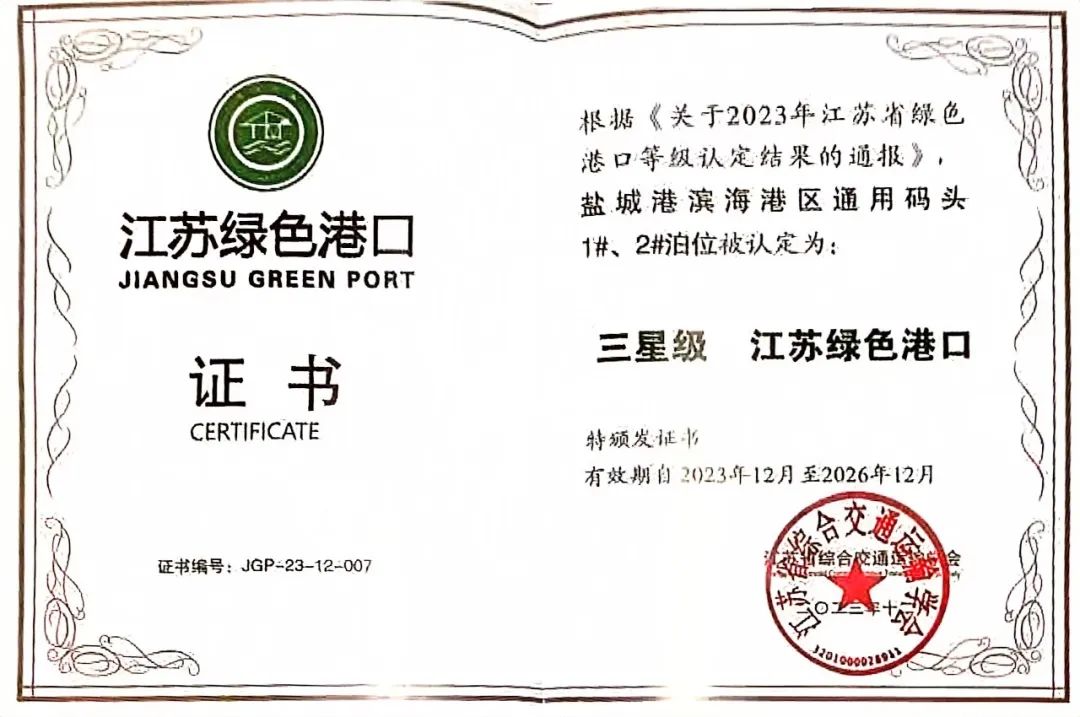 喜報!三家單位榮獲“江蘇省星級綠色港口”稱號