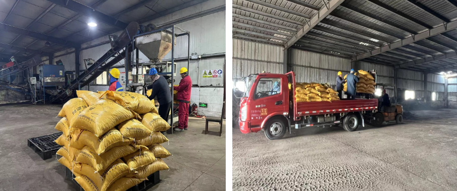 循環農業廠區固肥車間內,生產線的工人師傅加班加點趕訂單、抓生產,確保春耕化肥供應,伴隨著生產車間機器的轟鳴聲,一袋袋包裝好的化肥整齊碼放在廠房里。隨著春耕時節的到來,現在月出貨量都在50噸左右,叉車來回穿梭,裝卸工人們一刻不停將肥料裝上發往各鄉鎮的貨車,現場一派繁忙卻又井然有序的生產景象。