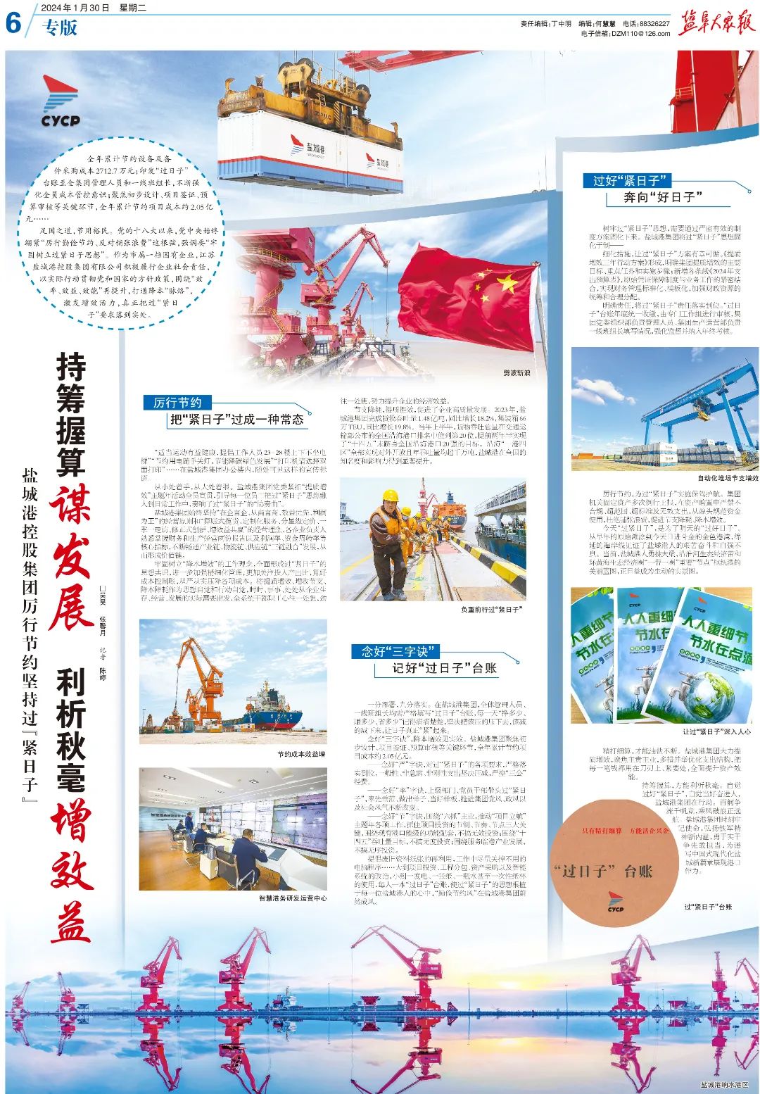 足國之道,節用裕民。黨的十八大以來,黨中央始終繃緊“厲行勤儉節約、反對鋪張浪費”這根弦,強調要“牢固樹立過緊日子思想”。作為市屬一檔國有企業,江蘇鹽城港控股集團有限公司積極履行企業社會責任,以實際行動貫徹黨和國家的方針政策,圍繞“效率、效益、效能”再提升,打通降本“脈絡”,激發增效活力,真正把過“緊日子”要求落到實處。