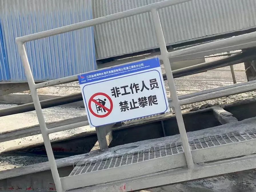 在港區門閘處設置“非作業車輛、工作人員禁止入內”標識,提示社會人員、車輛不要誤闖誤入港區。在引橋欄桿上懸掛“注意路口,當心貨車”“禁止酒后上崗,必須戴安全帽”等標識,提醒工作人員注意自身安全,嚴肅上崗紀律;在碼頭后沿護欄上懸掛“禁止翻越”“水深危險,禁止靠近”,警示工作人員不要翻越碼頭護欄,遠離危險水域。本次完善新增警示標識牌共十余塊。