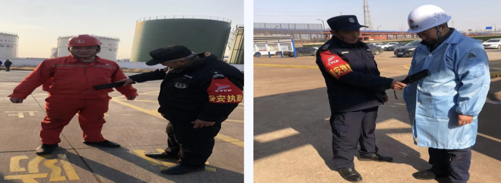 港儲(chǔ)石化公司開(kāi)展進(jìn)場(chǎng)手機(jī)安全管理專項(xiàng)整治行動(dòng),門(mén)衛(wèi)通過(guò)“金屬探測(cè)儀”對(duì)進(jìn)場(chǎng)人員是否攜帶手機(jī)進(jìn)行隨機(jī)檢查,排查重點(diǎn)作業(yè)、重點(diǎn)部位、重點(diǎn)人員、重點(diǎn)時(shí)段的風(fēng)險(xiǎn)隱患,嚴(yán)格落實(shí)現(xiàn)場(chǎng)安全監(jiān)督和防護(hù)措施。