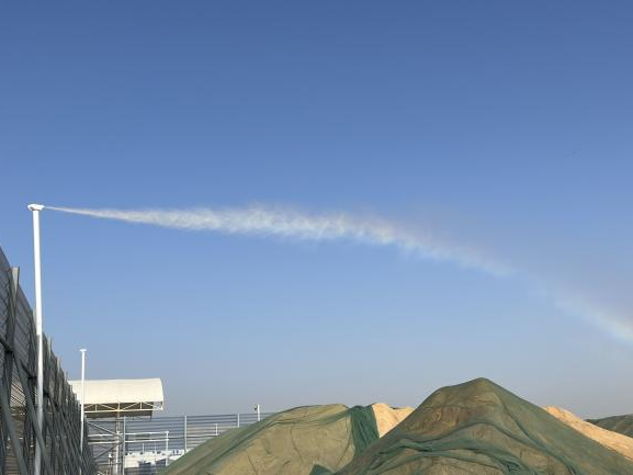 作為精準防塵抑塵重要試點工程,粉塵監(jiān)測與噴淋系統一體化項目建設覆蓋射陽港區(qū)整個散貨堆場區(qū)域,與萬噸級和3.5萬噸級堆場原有噴淋系統形成聯動,共建設10根霧樁噴淋,依據微脈沖氣溶膠激光雷達向大氣中發(fā)射連續(xù)的脈沖激光,獲取大氣的后向散射信號,連續(xù)監(jiān)測大氣氣溶膠的分布軟件系統運行,設施預警數值并聯動自動化噴淋,實現智能化精準降塵抑塵,項目建成使用可實現在減少1名人工使用成本的同時,據估算用水量較之從前可節(jié)約8000t/年。