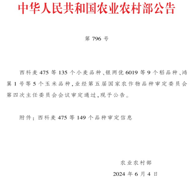 近日,農業農村部發布第五屆國家農作物品種審定委員會第四次主任委員會會議審定通過的作物品種,農業科技集團所屬金色農業選育的小麥新品種“金豐麥6號”通過國家審定。