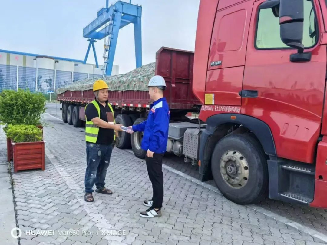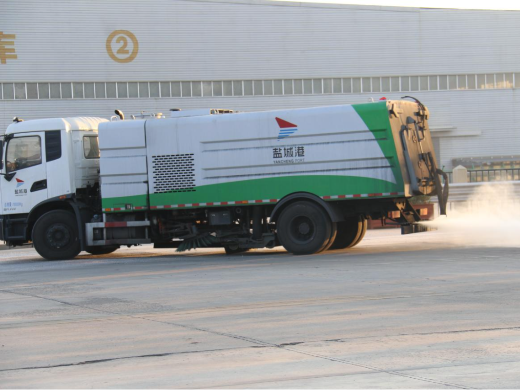 為進一步做好現(xiàn)場安全管理工作,對運輸車輛作業(yè)前進行安全檢查,要求司機嚴格按照港區(qū)限速要求行駛,尤其是磅房、轉彎處,必須提前減速,避免急剎。與此同時,為防止土石遺撒,最大程度減少對碼頭、道路及行駛環(huán)境的安全影響,采取“動態(tài)巡查+人工清掃+機械配合”的作業(yè)模式,對每臺運輸車輛進行嚴密苫蓋,在車輛運輸路線上布置清掃車,通過“人工掃帚+清掃車”清掃等組合方式,確保港區(qū)環(huán)境干凈整潔。