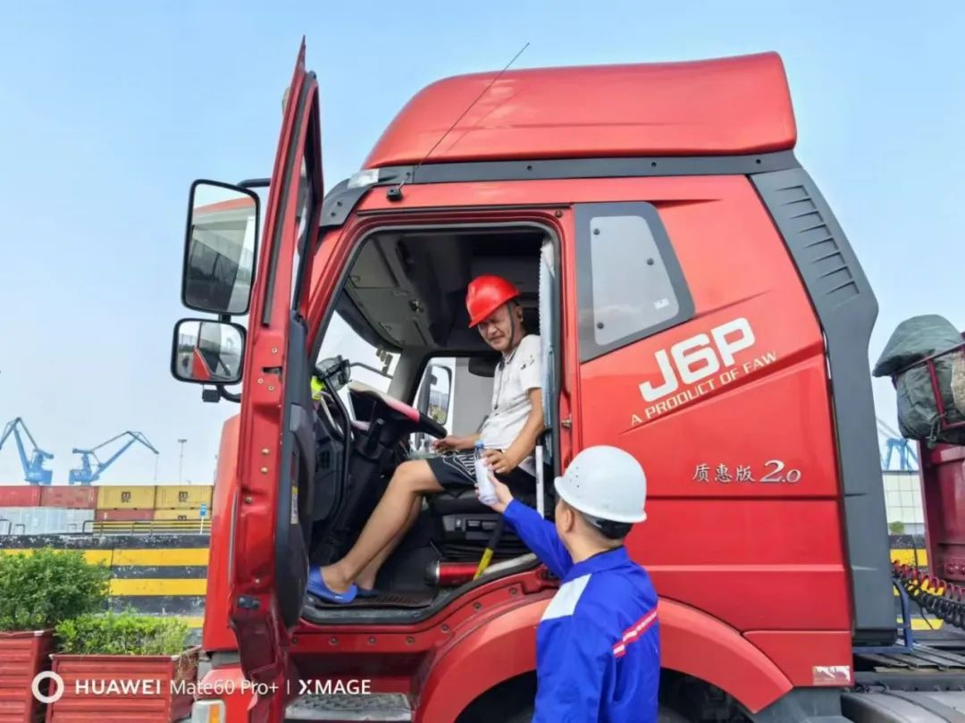 雖已入秋,碼頭高溫不減。一輛輛卡車排列在碼頭,靜靜等待土石裝卸運輸指令,卡車司機也一同經(jīng)歷著高溫的考驗。為確保卡車司機們的安全與健康,保障運輸不斷檔,港區(qū)派專人為司機送去礦泉水等清涼物資,并叮囑他們行車前要仔細檢查車況,注意駕駛安全,預防高溫中暑和各類安全事故發(fā)生。貨車司機們紛紛表示,這樣的關懷讓他們感受到了絲絲涼意和滿滿溫情。