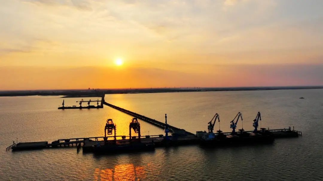 秋風吹過,碼頭的海面泛起層層漣漪,仿佛在訴說著歲月的故事。貨輪在波光粼粼的海面上穿梭,留下一道道美麗的痕跡。