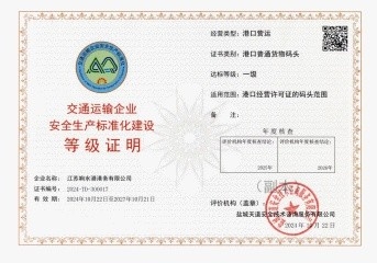 近日,鹽城港響水港區(qū)順利通過(guò)交通運(yùn)輸企業(yè)安全生產(chǎn)標(biāo)準(zhǔn)化達(dá)標(biāo)認(rèn)證考核,喜獲“交通運(yùn)輸企業(yè)安全生產(chǎn)標(biāo)準(zhǔn)化建設(shè)一級(jí)證書”。響水港區(qū)在安全生產(chǎn)管理體系精細(xì)化、規(guī)范化、標(biāo)準(zhǔn)化建設(shè)方面邁入新的發(fā)展階段,為推動(dòng)港口安全生產(chǎn)工作再上新臺(tái)階奠定了堅(jiān)實(shí)基礎(chǔ)。