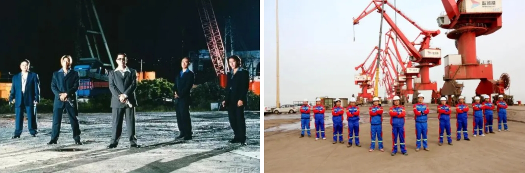 港口奮斗者并肩站立