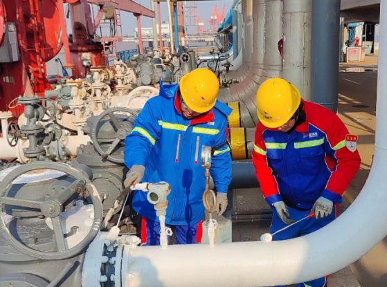 行動期間,工作人員根據作業方案嚴格落實相關防范措施,采用科學的除銹方法與現場相匹配的漆料,仔細打磨掉碼頭裝卸設備、管道、閥門等設備表面的銹跡與舊漆,進行細致處理,然后均勻涂刷上底漆與面漆。每一道工序都飽含專注與努力,確保涂層平整光滑、附著力強,能為設施提供長效防護。