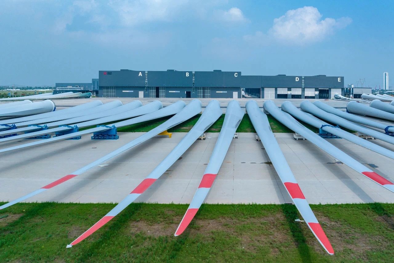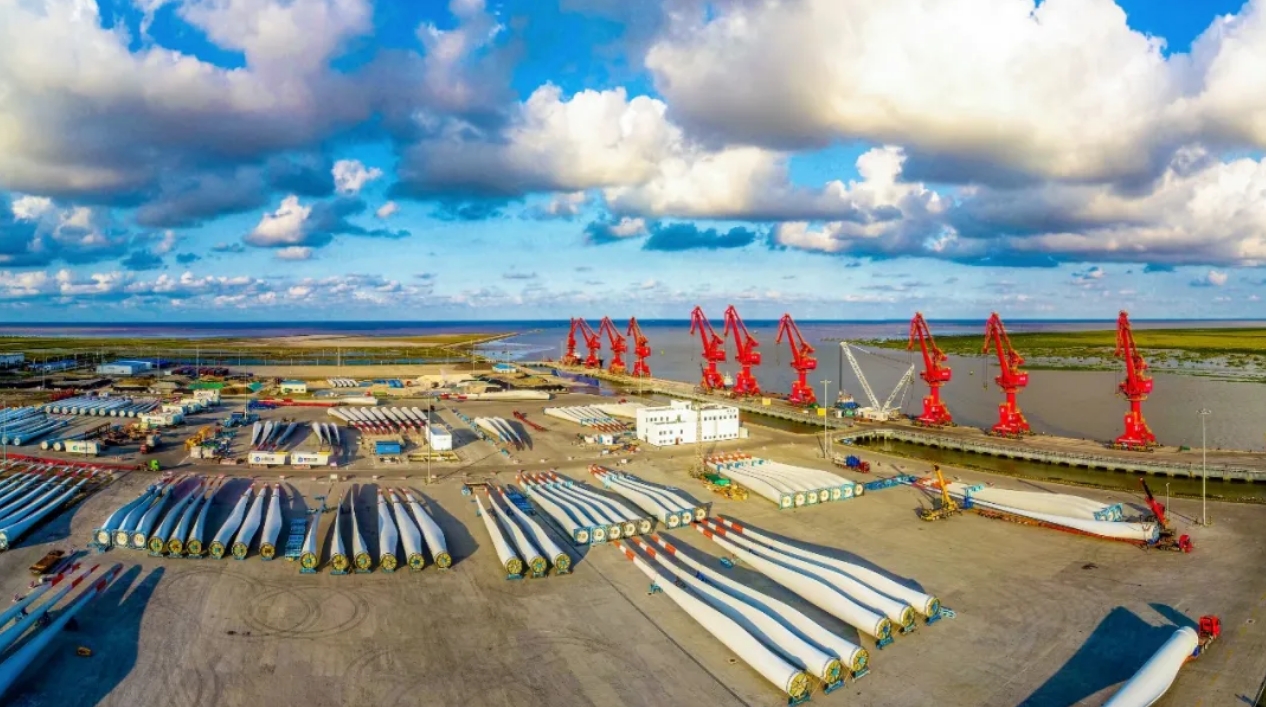 風能是一種清潔可再生能源,風力發電近年來越發受到世界各國重視。鹽城港作為華東地區大型國產風電葉片的主要出口港之一,風電葉片主要出口到共建“一帶一路”國家。此次共起運20套60件風電葉片及其附屬配件,其中葉片長75.8米,貨物總體積超6萬余立方米,總價值約6000萬元,是中國專門為國際市場(印度)需求研發的陸上風電設備。據鹽城出入境邊防檢查站統計,2024年鹽城港射陽港區累計完成風電裝備裝卸量936.85萬噸,同比增長23.67%,外貿風電完成19.01萬噸,同比增長100%。