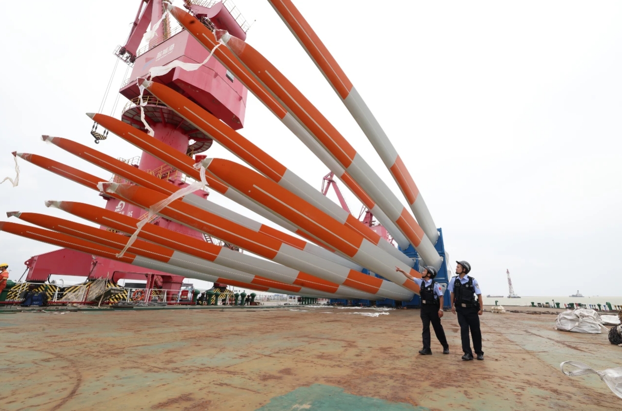 接到此次通關保障任務后,該站第一時間量身定制“一船一策”高效通關方案并開通“綠色通道”,及時掌握船舶、船員、載運貨物等相關動態,實行“7×24小時”通關保障,優化申報資料、審批流程、辦理時限等環節,提前做好相關查驗工作,最大限度縮短手續辦理和通關時間,實現警企聯系“零距離”、裝貨作業“零等待”、行政許可“零跑腿”、船舶靠離港“零延時”,助推鹽城口岸風電設備出口貿易跑出“加速度”,最大限度降低企業運營成本。