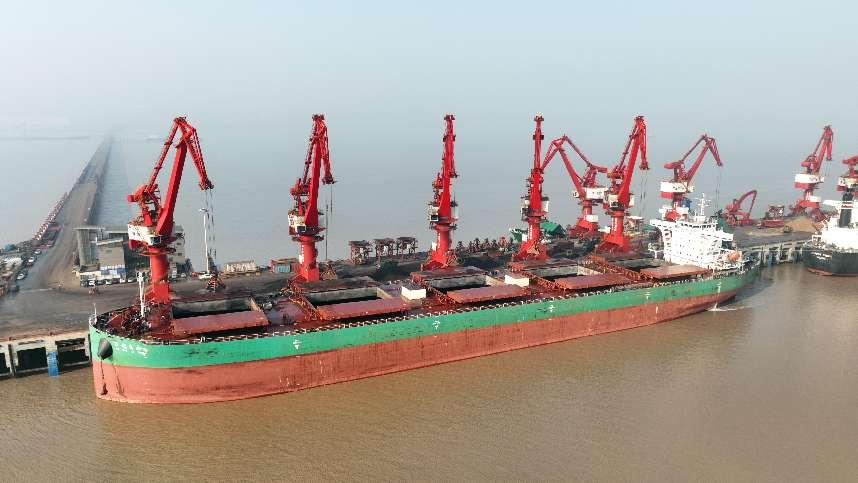 近日, “萬銘自由”輪滿載75102噸鐵礦石,從青島港跨越長途航程,穩穩??看筘S港區通用碼頭2號泊位,承載著象嶼環資的期望,為港區送來賀歲大禮。