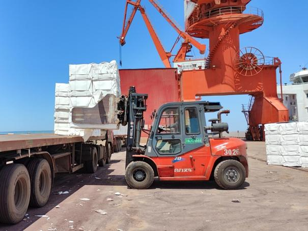 叉車師傅們也在各自的崗位上忙碌不停。他們熟練地操控著叉車,精準無比地將貨物叉起、穩穩放下,整套動作行云流水、一氣呵成。在他們的嫻熟操作下,原本笨重的貨物變得乖巧聽話,被整整齊齊地碼放在指定位置。他們的每一次搬運,為新春的港口增添了一道獨特而充滿力量的風景線。